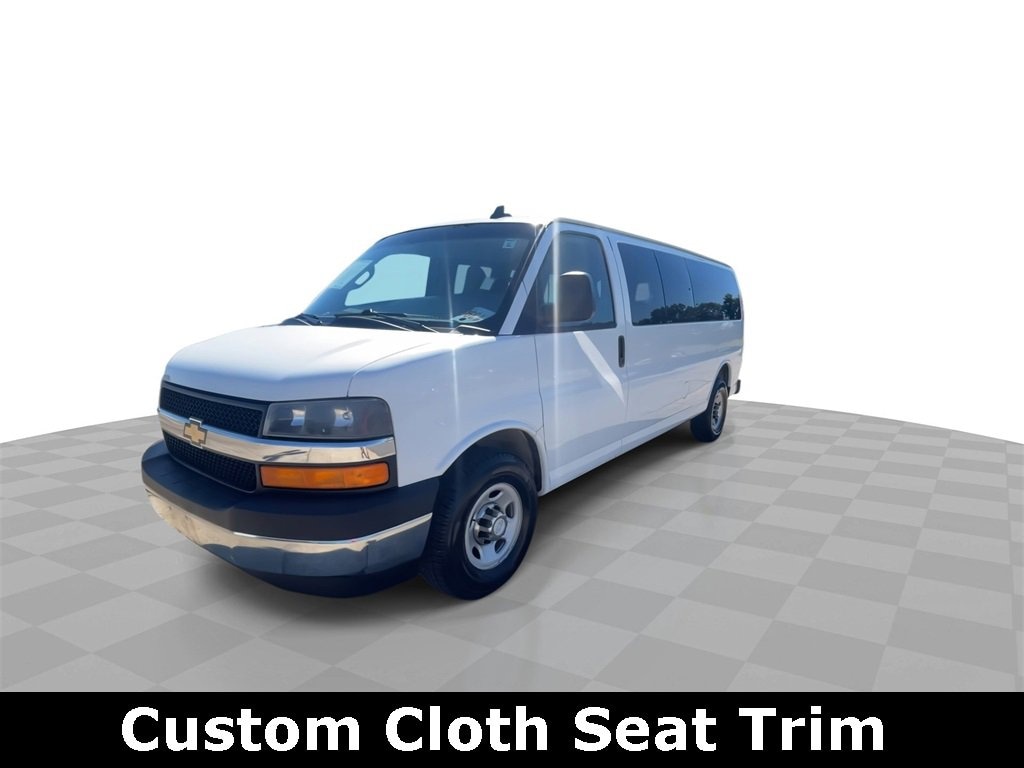 Certified. Odometer is 12940 miles below market average! Summit White 2017 Chevrolet Express 3500 LT Passenger RWD 6-Speed Automatic HD with Electronic Overdrive Vortec 4.8L V8 SFI 12-Passenger Seating (2-3-3-4 Seating Config), 150 Amp Alternator, 16 x 6.5 Steel Wheels, 2 Speakers, 3.42 Rear Axle Ratio, 3rd row seats: bench, 4-Wheel Disc Brakes, 4th-Row Bench Seat, ABS brakes, Air Conditioning, AM/FM radio, AM/FM Stereo w/MP3 Player, Bluetooth® For Phone, Bumpers: chrome, Chrome Appearance Package, Chrome Grille, Compass, Custom Cloth Seat Trim, Delay-off headlights, Deluxe Console w/Swing Out Storage Bin, Driver door bin, Driver vanity mirror, Driver's Seat Mounted Armrest, Dual Composite Halogen Headlamps, Dual front impact airbags, Dual front side impact airbags, Electronic Stability Control, Emergency communication system, Front & Rear Chrome Bumpers w/Step-Pad, Front anti-roll bar, Front Bucket Seats, Front reading lights, Front wheel independent suspension, Full-Floor Color-Keyed Carpeting, Fully automatic headlights, Illuminated entry, Inside Rearview Mirror w/Rr Vision Camera Display, Leather-Wrapped Steering Wheel, Low tire pressure warning, Occupant sensing airbag, Overhead airbag, Panic alarm, Passenger cancellable airbag, Passenger door bin, Passenger seat mounted armrest, Passenger vanity mirror, Power steering, Power windows, Preferred Equipment Group 1LT, Rear air conditioning, Rear reading lights, Rear Vision Camera, Reclining Front Bucket Seats w/Inboard Armrests, Remote Keyless Entry, Remote keyless entry, SiriusXM Satellite Radio, Speed control, Steering Wheel Mounted Audio Controls, Tachometer, Tilt steering wheel, Traction control, Trip computer, USB Port Audio System Feature, Variably intermittent wipers, Voltmeter, Wheel Trim w/Chrome Center Caps.GM Details:* Roadside Assistance* Limited Warranty: 12 Month/12,000 Mile (whichever comes first) from certified purchase date* Transferable Warranty* Warranty Deductible: $0* 24 months/24,000 miles (whichever comes first) Certified Pre-Owned Scheduled Maintenance Plan and 3 days/150 miles (whichever comes first) Vehicle Exchange Program. SiriusXM 3-month trial subscription.* Vehicle History* 172 Point Inspection* Powertrain Limited Warranty: 72 Month/100,000 Mile (whichever comes first) from original in-service dateChrome Appearance Package (Chrome Grille, Dual Composite Halogen Headlamps, and Front & Rear Chrome Bumpers w/Step-Pad), Preferred Equipment Group 1LT (150 Amp Alternator, Deluxe Console w/Swing Out Storage Bin, Full-Floor Color-Keyed Carpeting, Remote Keyless Entry, and Wheel Trim w/Chrome Center Caps), GM Certified, 12-Passenger Seating (2-3-3-4 Seating Config), 16 x 6.5 Steel Wheels, 2 Speakers, 3.42 Rear Axle Ratio, 3rd row seats: bench, 4-Wheel Disc Brakes, 4th-Row Bench Seat, ABS brakes, Air Conditioning, AM/FM radio, AM/FM Stereo w/MP3 Player, Bluetooth® For Phone, Bumpers: chrome, Compass, Custom Cloth Seat Trim, Delay-off headlights, Driver door bin, Driver vanity mirror, Driver's Seat Mounted Armrest, Dual front impact airbags, Dual front side impact airbags, Electronic Stability Control, Emergency communication system, Front anti-roll bar, Front Bucket Seats, Front reading lights, Front wheel independent suspension, Fully automatic headlights, Illuminated entry, Inside Rearview Mirror w/Rr Vision Camera Display, Leather-Wrapped Steering Wheel, Low tire pressure warning, Occupant sensing airbag, Overhead airbag, Panic alarm, Passenger cancellable airbag, Passenger door bin, Passenger seat mounted armrest, Passenger vanity mirror, Power steering, Power windows, Rear air conditioning, Rear reading lights, Rear Vision Camera, Reclining Front Bucket Seats w/Inboard Armrests, Remote keyless entry, SiriusXM Satellite Radio, Speed control, Steering Wheel Mounted Audio Controls, Tachometer, Tilt steering wheel, Traction control, Trip computer, USB Port Audio System Feature