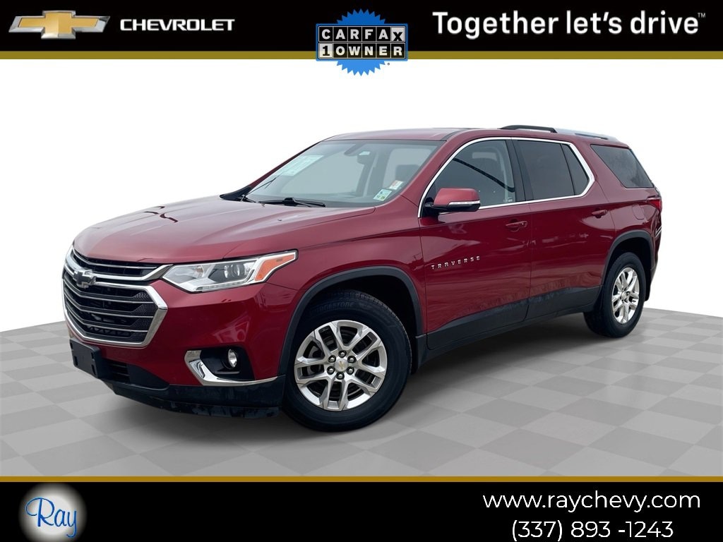 Odometer is 14935 miles below market average! Cajun Red Tintcoat 2018 Chevrolet Traverse LT Cloth w/1LT FWD 9-Speed Automatic 3.6L V6 SIDI VVT 3.49 Axle Ratio, 3rd row seats: split-bench, 4-Wheel Disc Brakes, 4.2 Multi-Color Enhanced Driver Instrument Display, 6 Speakers, 7-Passenger Seating (2-2-3 Seating Configuration), ABS brakes, Air Conditioning, Alloy wheels, AM/FM radio: SiriusXM, Apple CarPlay/Android Auto, Automatic temperature control, Brake assist, Bumpers: body-color, Compass, Convenience & Driver Confidence Package, Delay-off headlights, Driver door bin, Driver vanity mirror, Dual front impact airbags, Dual front side impact airbags, Electronic Stability Control, Emergency communication system: OnStar Guidance, Exterior Parking Camera Rear, Four wheel independent suspension, Front anti-roll bar, Front Bucket Seats, Front Center Armrest, Front dual zone A/C, Front fog lights, Front License Plate Bracket Mounting Package, Front reading lights, Fully automatic headlights, Heated door mirrors, Heated Driver & Front Passenger Seats, High-Intensity Discharge Headlights, Illuminated entry, Lane Change Alert w/Side Blind Zone Alert, Low tire pressure warning, Occupant sensing airbag, Outside temperature display, Overhead airbag, Overhead console, Panic alarm, Passenger door bin, Passenger vanity mirror, Power door mirrors, Power driver seat, Power steering, Power windows, Preferred Equipment Group 1LT, Premium Cloth Seat Trim, Radio data system, Radio: Chevrolet MyLink AM/FM Stereo, Radio: Chevrolet MyLink AM/FM Stereo w/8 Screen, Rear air conditioning, Rear anti-roll bar, Rear Cross-Traffic Alert, Rear Park Assist w/Audible Warning, Rear Power Liftgate, Rear reading lights, Rear window defroster, Rear window wiper, Remote keyless entry, Remote Start, Roof rack: rails only, Security system, SiriusXM Satellite Radio, Speed control, Speed-sensing steering, Spoiler, Steering wheel mounted audio controls, Tachometer, Telescoping steering wheel, Tilt steering wheel, Traction control, Trip computer, Turn signal indicator mirrors, Universal Home Remote, Variably intermittent wipers, Voltmeter, Wheels: 18 Bright Silver Machined Painted Alum.