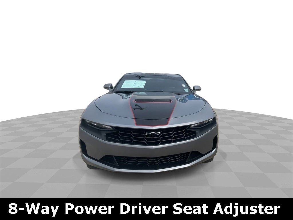 Certified. Satin Steel Metallic 2021 Chevrolet Camaro LT1 RWD 10-Speed Automatic 6.2L V8 2.77 Rear Axle Ratio, 4-Wheel Disc Brakes, 6 Speakers, 6-Speaker Audio System Feature, 6-Way Power Front Passenger Seat Adjuster, 8-Way Power Driver Seat Adjuster, ABS brakes, Air Conditioning, Alloy wheels, Apple CarPlay/Android Auto, Automatic temperature control, Bluetooth® For Phone, Brake assist, Bumpers: body-color, Cloth Seat Trim, Compass, Delay-off headlights, Driver door bin, Driver vanity mirror, Dual front impact airbags, Dual front side impact airbags, Dual Mode Exhaust, Electronic Stability Control, Exterior Parking Camera Rear, Four wheel independent suspension, Front anti-roll bar, Front Bucket Seats, Front Center Armrest, Front reading lights, Front Sport Bucket Seats, Fully automatic headlights, Illuminated entry, Knee airbag, Leather Shift Knob, Low tire pressure warning, Occupant sensing airbag, Overhead airbag, Paddle-Shift Manual Controls, Panic alarm, Passenger door bin, Passenger vanity mirror, Power door mirrors, Power driver seat, Power passenger seat, Power steering, Power windows, Premium audio system: Chevrolet Infotainment System, Radio data system, Radio: Chevrolet Infotainment 3 Plus System, Rear anti-roll bar, Rear window defroster, Remote keyless entry, Remote Vehicle Starter System, Security system, SiriusXM w/360L, Speed control, Speed-sensing steering, Steering wheel mounted audio controls, Tachometer, Telescoping steering wheel, Tilt steering wheel, Traction control, Trip computer, Variably intermittent wipers, Voltmeter.GM Details:* Roadside Assistance* Vehicle History* Limited Warranty: 12 Month/12,000 Mile (whichever comes first) from certified purchase date* Powertrain Limited Warranty: 72 Month/100,000 Mile (whichever comes first) from original in-service date* Transferable Warranty* Warranty Deductible: $0* 172 Point Inspection* 24 months/24,000 miles (whichever comes first) Certified Pre-Owned Scheduled Maintenance Plan and 3 days/150 miles (whichever comes first) Vehicle Exchange Program. SiriusXM 3-month trial subscription.GM Certified, 2.77 Rear Axle Ratio, 4-Wheel Disc Brakes, 6 Speakers, 6-Speaker Audio System Feature, 6-Way Power Front Passenger Seat Adjuster, 8-Way Power Driver Seat Adjuster, ABS brakes, Air Conditioning, Alloy wheels, Apple CarPlay/Android Auto, Automatic temperature control, Bluetooth® For Phone, Brake assist, Bumpers: body-color, Cloth Seat Trim, Compass, Delay-off headlights, Driver door bin, Driver vanity mirror, Dual front impact airbags, Dual front side impact airbags, Dual Mode Exhaust, Electronic Stability Control, Exterior Parking Camera Rear, Four wheel independent suspension, Front anti-roll bar, Front Bucket Seats, Front Center Armrest, Front reading lights, Front Sport Bucket Seats, Fully automatic headlights, Illuminated entry, Knee airbag, Leather Shift Knob, Low tire pressure warning, Occupant sensing airbag, Overhead airbag, Paddle-Shift Manual Controls, Panic alarm, Passenger door bin, Passenger vanity mirror, Power door mirrors, Power driver seat, Power passenger seat, Power steering, Power windows, Premium audio system: Chevrolet Infotainment System, Radio data system, Radio: Chevrolet Infotainment 3 Plus System, Rear anti-roll bar, Rear window defroster, Remote keyless entry, Remote Vehicle Starter System, Security system, SiriusXM w/360L, Speed control, Speed-sensing steering, Steering wheel mounted audio controls, Tachometer, Telescoping steering wheel, Tilt steering wheel, Traction control, Trip computer, Variably intermittent wipers, and Voltmeter.