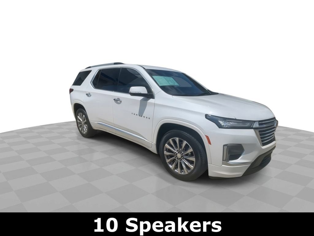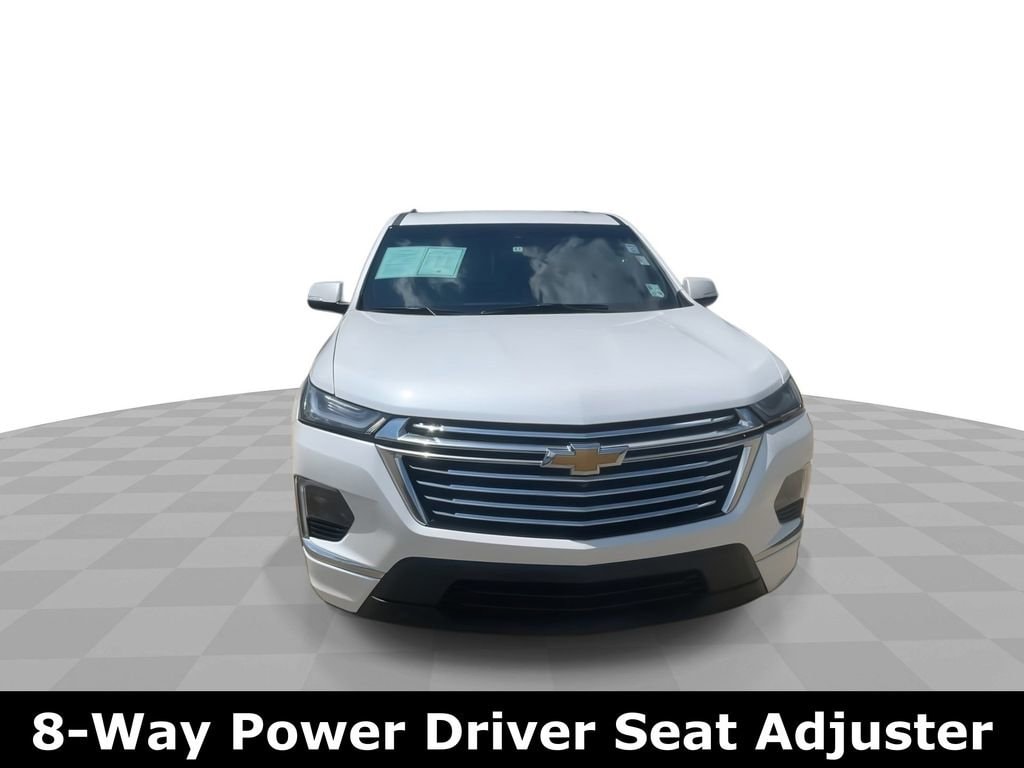 Certified. Iridescent Pearl Tricoat 2022 Chevrolet Traverse Premier FWD 9-Speed Automatic 3.6L V6 SIDI VVT 10 Speakers, 3.49 Axle Ratio, 3rd row seats: split-bench, 4-Wheel Disc Brakes, 6-Way Power Front Passenger Seat, 8-Way Power Driver Seat Adjuster, ABS brakes, Air Conditioning, Alloy wheels, AM/FM radio: SiriusXM with 360L, Apple CarPlay/Android Auto, Auto High-beam Headlights, Auto-dimming door mirrors, Auto-dimming Rear-View mirror, Automatic temperature control, Bose Premium 10-Speaker Audio System Feature, Brake assist, Bumpers: body-color, Compass, Delay-off headlights, Driver door bin, Driver vanity mirror, Dual front impact airbags, Dual front side impact airbags, Dual SkyScape 2-Panel Power Sunroof, Electronic Stability Control, Emergency communication system: OnStar Guidance, Four wheel independent suspension, Front anti-roll bar, Front Bucket Seats, Front Center Armrest, Front dual zone A/C, Front Passenger 2-Way Power Lumbar, Front reading lights, Fully automatic headlights, Garage door transmitter, Heated 2nd Row Outboard Position Seats, Heated door mirrors, Heated Driver & Front Passenger Seats, Heated front seats, Heated rear seats, Heated Steering Wheel, Heated steering wheel, Heavy-Duty Cooling System, Hitch Guidance w/Hitch View, Illuminated entry, Leather steering wheel, Low tire pressure warning, Memory seat, Navigation System, Not Equipped w/Heated Steering Wheel, Not Equipped w/Rear Park Assist, Occupant sensing airbag, Outside temperature display, Overhead airbag, Overhead console, Panic alarm, Passenger door bin, Passenger vanity mirror, Perforated Leather-Appointed Seat Trim, Power door mirrors, Power Driver Lumbar Control, Power driver seat, Power Liftgate, Power passenger seat, Power steering, Power windows, Preferred Equipment Group 1LZ, Premium audio system: Chevrolet Infotainment 3 Plus, Radio data system, Radio: Chevrolet Infotainment 3 Plus System w/Navi, Rear air conditioning, Rear anti-roll bar, Rear Park Assist w/Audible Warning, Rear reading lights, Rear window defroster, Rear window wiper, Remote keyless entry, Roof rack: rails only, Security system, SiriusXM w/360L, Speed control, Speed-sensing steering, Spoiler, Steering wheel memory, Steering wheel mounted audio controls, Tachometer, Telescoping steering wheel, Tilt steering wheel, Traction control, Trailering Assist Guidelines, Trailering Equipment, Trip computer, Turn signal indicator mirrors, Variably intermittent wipers, Ventilated Driver & Front Passenger Seats, Ventilated front seats, Voltmeter, Wheels: 20 Metallic Machined-Face Aluminum.GM Details:* Transferable Warranty* 172 Point Inspection* Warranty Deductible: $0* 24 months/24,000 miles (whichever comes first) Certified Pre-Owned Scheduled Maintenance Plan and 3 days/150 miles (whichever comes first) Vehicle Exchange Program. SiriusXM 3-month trial subscription.* Powertrain Limited Warranty: 72 Month/100,000 Mile (whichever comes first) from original in-service date* Vehicle History* Roadside Assistance* Limited Warranty: 12 Month/12,000 Mile (whichever comes first) from certified purchase datePreferred Equipment Group 1LZ (Heated 2nd Row Outboard Position Seats, Heated Driver & Front Passenger Seats, Heated Steering Wheel, Rear Park Assist w/Audible Warning, and Ventilated Driver & Front Passenger Seats), Trailering Equipment (Heavy-Duty Cooling System, Hitch Guidance w/Hitch View, and Trailering Assist Guidelines), GM Certified, 10 Speakers, 3.49 Axle Ratio, 3rd row seats: split-bench, 4-Wheel Disc Brakes, 6-Way Power Front Passenger Seat, 8-Way Power Driver Seat Adjuster, ABS brakes, Air Conditioning, Alloy wheels, AM/FM radio: SiriusXM with 360L, Apple CarPlay/Android Auto, Auto High-beam Headlights, Auto-dimming door mirrors, Auto-dimming Rear-View mirror, Automatic temperature control, Bose Premium 10-Speaker Audio System Feature, Brake assist, Bumpers: body-color, Compass, Delay-off headlights,