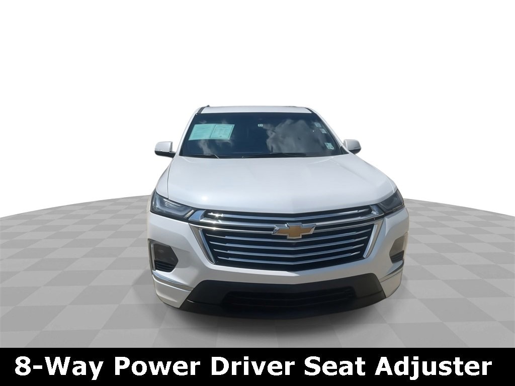 Certified. Iridescent Pearl Tricoat 2022 Chevrolet Traverse Premier FWD 9-Speed Automatic 3.6L V6 SIDI VVT 10 Speakers, 3.49 Axle Ratio, 3rd row seats: split-bench, 4-Wheel Disc Brakes, 6-Way Power Front Passenger Seat, 8-Way Power Driver Seat Adjuster, ABS brakes, Air Conditioning, Alloy wheels, AM/FM radio: SiriusXM with 360L, Apple CarPlay/Android Auto, Auto High-beam Headlights, Auto-dimming door mirrors, Auto-dimming Rear-View mirror, Automatic temperature control, Bose Premium 10-Speaker Audio System Feature, Brake assist, Bumpers: body-color, Compass, Delay-off headlights, Driver door bin, Driver vanity mirror, Dual front impact airbags, Dual front side impact airbags, Dual SkyScape 2-Panel Power Sunroof, Electronic Stability Control, Emergency communication system: OnStar Guidance, Four wheel independent suspension, Front anti-roll bar, Front Bucket Seats, Front Center Armrest, Front dual zone A/C, Front Passenger 2-Way Power Lumbar, Front reading lights, Fully automatic headlights, Garage door transmitter, Heated 2nd Row Outboard Position Seats, Heated door mirrors, Heated Driver & Front Passenger Seats, Heated front seats, Heated rear seats, Heated Steering Wheel, Heated steering wheel, Heavy-Duty Cooling System, Hitch Guidance w/Hitch View, Illuminated entry, Leather steering wheel, Low tire pressure warning, Memory seat, Navigation System, Not Equipped w/Heated Steering Wheel, Not Equipped w/Rear Park Assist, Occupant sensing airbag, Outside temperature display, Overhead airbag, Overhead console, Panic alarm, Passenger door bin, Passenger vanity mirror, Perforated Leather-Appointed Seat Trim, Power door mirrors, Power Driver Lumbar Control, Power driver seat, Power Liftgate, Power passenger seat, Power steering, Power windows, Preferred Equipment Group 1LZ, Premium audio system: Chevrolet Infotainment 3 Plus, Radio data system, Radio: Chevrolet Infotainment 3 Plus System w/Navi, Rear air conditioning, Rear anti-roll bar, Rear Park Assist w/Audible Warning, Rear reading lights, Rear window defroster, Rear window wiper, Remote keyless entry, Roof rack: rails only, Security system, SiriusXM w/360L, Speed control, Speed-sensing steering, Spoiler, Steering wheel memory, Steering wheel mounted audio controls, Tachometer, Telescoping steering wheel, Tilt steering wheel, Traction control, Trailering Assist Guidelines, Trailering Equipment, Trip computer, Turn signal indicator mirrors, Variably intermittent wipers, Ventilated Driver & Front Passenger Seats, Ventilated front seats, Voltmeter, Wheels: 20 Metallic Machined-Face Aluminum.