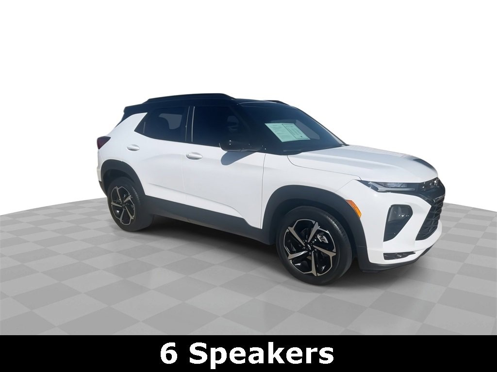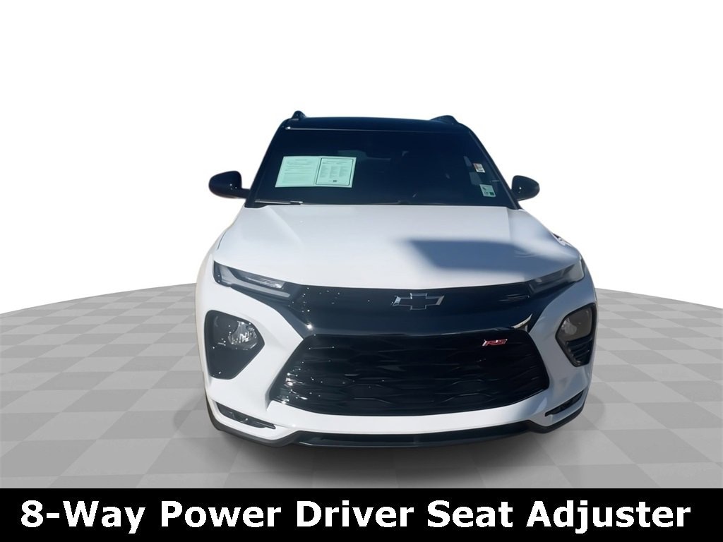 Certified. Odometer is 24122 miles below market average! Summit White 2023 Chevrolet TrailBlazer RS FWD CVT 1.3L Ecotec Turbo DOHC SIDI w/VVT 1 Type-A & 1 Type-C USB Charging-Only Ports, 120-Volt Power Outlet, 2-Way Adjustable Front Head Restraints, 2-Way Power Driver Lumbar Seat Adjuster, 4-Way Manual Front Passenger Seat Adjuster, 4-Wheel Disc Brakes, 5.45 Axle Ratio, 6 Speakers, 6-Speaker Audio System Feature, 7 Diagonal Color Touchscreen, 8-Way Power Driver Seat Adjuster, 8 Diagonal Color Touchscreen Display, ABS brakes, Air Conditioning, Alloy wheels, AM/FM radio: SiriusXM, Auto High-beam Headlights, Brake assist, Bumpers: body-color, Cabin Humidity Sensor, Cloth w/Leatherette Seat Trim, Compass, Confidence II Package, Convenience Package, Delay-off headlights, Driver & Front Passenger Illuminated Vanity Mirrors, Driver door bin, Driver vanity mirror, Dual front impact airbags, Dual front side impact airbags, Electronic Stability Control, Emergency communication system: OnStar and Chevrolet connected services capable, Exterior Parking Camera Rear, Flat-Folding Front Passenger Seatback, Front anti-roll bar, Front Bucket Seats, Front Center Armrest, Front fog lights, Front License Plate Bracket, Front reading lights, Front wheel independent suspension, Fully automatic headlights, Heated door mirrors, Heated Driver & Front Passenger Seats, Heated front seats, Heated Steering Wheel, Heated steering wheel, Illuminated entry, Inside Rear-View Auto-Dimming Mirror, Knee airbag, Leather Shift Knob, Leather steering wheel, Low tire pressure warning, Mosaic Black Metallic Two-Tone Roof, Not Equipped w/Rear Park Assist, Occupant sensing airbag, Overhead airbag, Overhead console, Panic alarm, Passenger door bin, Passenger vanity mirror, Power door mirrors, Power driver seat, Power steering, Power windows, Preferred Equipment Group 1RS, Radio data system, Radio: Chevrolet Infotainment 3 System, Rear Park Assist, Rear seat center armrest, Rear side impact airbag, Rear window defroster, Rear window wiper, Remote keyless entry, Ride & Handling Suspension, Security system, Single-Zone Auto Climate Control Air Conditioning, SiriusXM Radio, Speed control, Split folding rear seat, Spoiler, Steering wheel mounted audio controls, Tachometer, Telescoping steering wheel, Tilt steering wheel, Traction control, Trip computer, Variably intermittent wipers, Wheels: 18 High Gloss Black Machined Aluminum, Wireless Apple CarPlay/Android Auto.