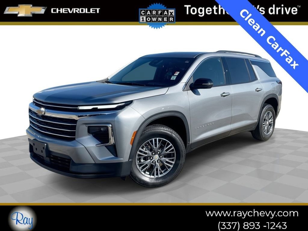 Certified. Odometer is 4981 miles below market average! Sterling Gray Metallic 2025 Chevrolet Traverse LT 1LT FWD 8-Speed Automatic 2.5L DOHC 3rd row seats: split-bench, 4-Way Manual Front Passenger Seat Adjuster, 4-Wheel Disc Brakes, 6 Speakers, 6-Speaker Audio System Feature, 8-Way Power Driver Seat Adjuster, ABS brakes, Air Conditioning, Alloy wheels, AM/FM radio: SiriusXM with 360L, Apple CarPlay/Android Auto, Auto High-beam Headlights, Automatic temperature control, Brake assist, Bumpers: body-color, Child-Seat-Sensing Airbag, Compass, Delay-off headlights, Driver door bin, Driver vanity mirror, Dual front impact airbags, Dual front side impact airbags, Electronic Stability Control, Emergency communication system: OnStar, Four wheel independent suspension, Front anti-roll bar, Front Bucket Seats, Front Center Armrest, Front dual zone A/C, Front reading lights, Fully automatic headlights, Heated door mirrors, Heated front seats, Heated steering wheel, Illuminated entry, Low tire pressure warning, Navigation System, Occupant sensing airbag, Outside temperature display, Overhead airbag, Overhead console, Panic alarm, Passenger door bin, Passenger vanity mirror, Power door mirrors, Power driver seat, Power Liftgate, Power steering, Power windows, Preferred Equipment Group 1LT, Premium Cloth Seat Trim, Radio data system, Rear air conditioning, Rear anti-roll bar, Rear reading lights, Rear window defroster, Rear window wiper, Remote keyless entry, Security system, Speed control, Speed-sensing steering, Spoiler, Steering wheel mounted audio controls, Tachometer, Telescoping steering wheel, Tilt steering wheel, Traction control, Trip computer, Turn signal indicator mirrors, Variably intermittent wipers, Voltmeter, Wheels: 18 Grazen Metallic Machined-Face Aluminum.
