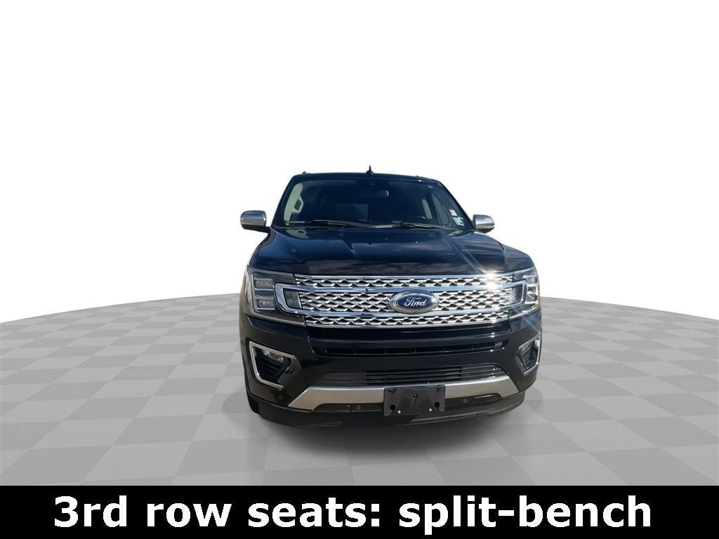 Odometer is 16663 miles below market average! Black 2019 Ford Expedition Max Platinum RWD 10-Speed Automatic EcoBoost 3.5L V6 GTDi DOHC 24V Twin Turbocharged 12 Speakers, 1st & 2nd Row Floor Liners, 22 Polished Aluminum Wheels, 3.31 Axle Ratio, 3rd row seats: split-bench, 4-Wheel Disc Brakes, ABS brakes, Adaptive suspension, Adjustable pedals, Air Conditioning, Alloy wheels, AM/FM radio: SiriusXM, AppLink/Apple CarPlay and Android Auto, Auto High-beam Headlights, Auto-dimming door mirrors, Auto-dimming Rear-View mirror, Automatic temperature control, Brake assist, Bumpers: body-color, Compass, Delay-off headlights, Driver door bin, Driver vanity mirror, Dual front impact airbags, Dual front side impact airbags, Dual-Headrest Rear-Seat Entertainment System, Electronic Stability Control, Emergency communication system: SYNC 3 911 Assist, Equipment Group 600A, Exterior Parking Camera Rear, Four wheel independent suspension, Front anti-roll bar, Front Bucket Seats, Front Center Armrest, Front dual zone A/C, Front fog lights, Front reading lights, Fully automatic headlights, Garage door transmitter, Genuine wood console insert, Genuine wood dashboard insert, Genuine wood door panel insert, Heated & Cooled Perforated Leather Fr Bucket Seats, Heated door mirrors, Heated front seats, Heated rear seats, Heated steering wheel, Illuminated entry, Lane Departure Warning System, Leather steering wheel, Low tire pressure warning, Memory seat, Navigation System, Occupant sensing airbag, Outside temperature display, Overhead airbag, Overhead console, Panic alarm, Passenger door bin, Passenger vanity mirror, Pedal memory, Power door mirrors, Power driver seat, Power Liftgate, Power moonroof, Power passenger seat, Power steering, Power windows, Radio data system, Radio: B&O Sound System by Bang & Olufsen, Rain sensing wipers, Rear air conditioning, Rear anti-roll bar, Rear audio controls, Rear reading lights, Rear window defroster, Rear window wiper, Reclining 3rd row seat, Remote keyless entry, Roof rack, Security system, SiriusXM Satellite Radio, Speed control, Speed-sensing steering, Speed-Sensitive Wipers, Split folding rear seat, Steering wheel memory, Steering wheel mounted audio controls, SYNC 3 Communications & Entertainment System, Tachometer, Telescoping steering wheel, Tilt steering wheel, Traction control, Trip computer, Turn signal indicator mirrors, Variably intermittent wipers, Ventilated front seats, Voltmeter.