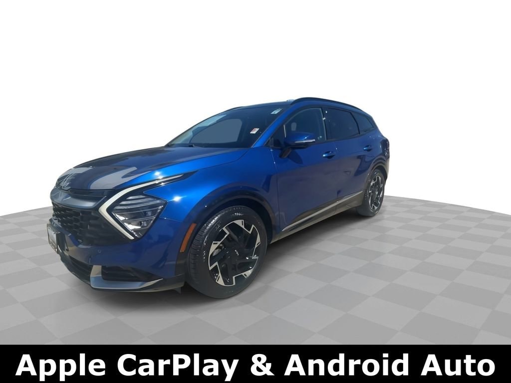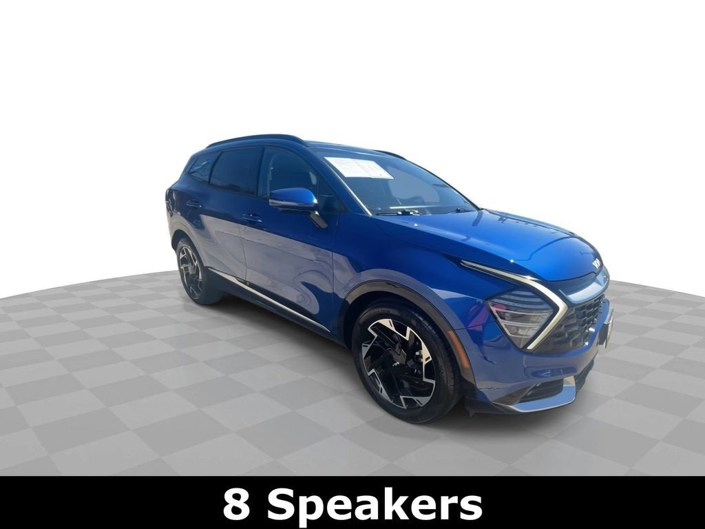 Certified. Sapphire Blue 2023 Kia Sportage SX-Prestige FWD 8-Speed Automatic I4 4-Wheel Disc Brakes, 8 Speakers, ABS brakes, Air Conditioning, Alloy wheels, AM/FM radio: SiriusXM, Apple CarPlay & Android Auto, Auto High-beam Headlights, Auto-dimming Rear-View mirror, Automatic temperature control, Axle Ratio: 3.648, Brake assist, Bumpers: body-color, Carpeted Floor Mats, Compass, Delay-off headlights, Driver door bin, Driver vanity mirror, Dual front impact airbags, Dual front side impact airbags, Electronic Stability Control, Emergency communication system, Four wheel independent suspension, Front anti-roll bar, Front Bucket Seats, Front Center Armrest, Front dual zone A/C, Front fog lights, Front reading lights, Fully automatic headlights, Garage door transmitter: HomeLink, harman/kardon® Speakers, Heated & Ventilated Front Bucket Seats, Heated door mirrors, Heated front seats, Heated steering wheel, Illuminated entry, Leather Shift Knob, Leather steering wheel, Low tire pressure warning, Memory seat, Navigation System, Occupant sensing airbag, Outside temperature display, Overhead airbag, Overhead console, Panic alarm, Passenger door bin, Passenger vanity mirror, Power door mirrors, Power driver seat, Power Liftgate, Power moonroof, Power passenger seat, Power steering, Power windows, Premium Leatherette Seat Trim, Radio: AM/FM/HD Audio System, Rain sensing wipers, Rear anti-roll bar, Rear reading lights, Rear seat center armrest, Rear window defroster, Rear window wiper, Remote keyless entry, Security system, Speed control, Speed-sensing steering, Split folding rear seat, Spoiler, Steering wheel mounted audio controls, Tachometer, Telescoping steering wheel, Tilt steering wheel, Traction control, Trip computer, Turn signal indicator mirrors, Variably intermittent wipers, Ventilated front seats, Wheel Locks, Wheels: 19 Gloss Black Alloy.