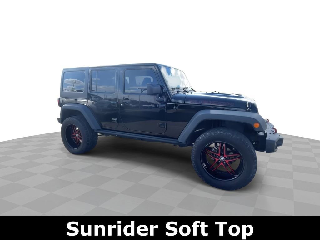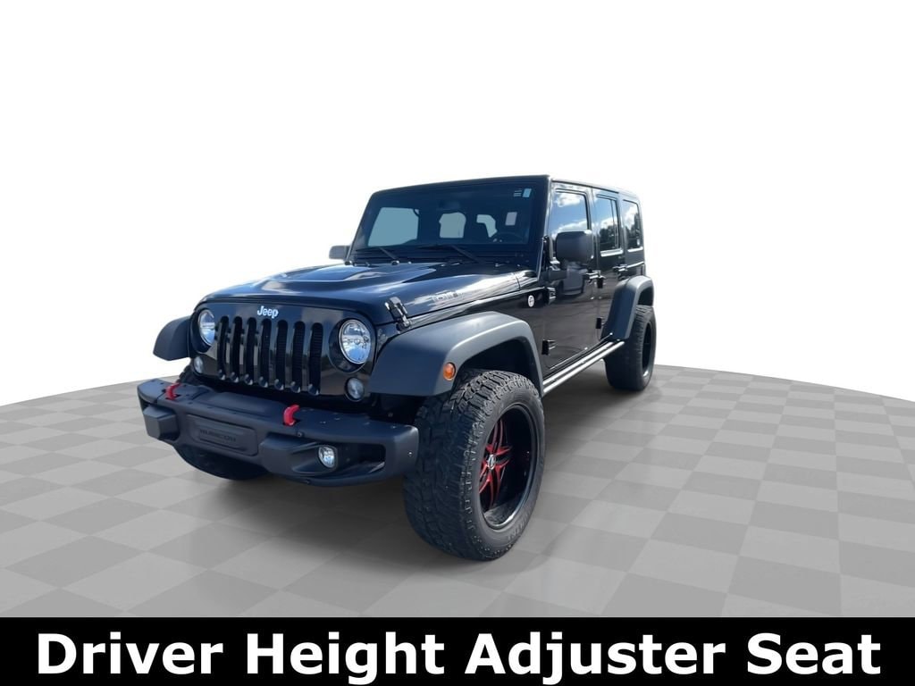 Odometer is 64376 miles below market average! Black Clearcoat 2016 Jeep Wrangler Unlimited Rubicon 4WD 5-Speed Automatic 3.6L V6 24V VVT 17 x 7.5 Polished Mineral Gray Wheels, 4-Wheel Disc Brakes, 4.10 Rear Axle Ratio, 8 Speakers, ABS brakes, Accent Stitching, Add 4.10 Axle Ratio, Air Conditioning, Air Conditioning w/Auto Temperature Control, Air Filtering, Alloy wheels, Alpine 9-Speaker w/All Weather Subwoofer, AM/FM radio: SiriusXM, Audio Jack Input for Mobile Devices, Auto-dimming Rear-View mirror, Black 3-Piece Hard Top, Black/Chrome Screws Fuel Filler Door, Brake assist, CD player, Chrome/Leather Wrapped Shift Knob, Class II Receiver Hitch, Cloth Seats w/Adjustable Head Restraints, Compass, Connectivity Group, Delete Sunrider Soft Top, Driver door bin, Driver Height Adjuster Seat, Driver vanity mirror, Dual front impact airbags, Electronic Stability Control, Freedom Panel Storage Bag, Front anti-roll bar, Front Bucket Seats, Front Center Armrest w/Storage, Front fog lights, Front reading lights, Front Seat Back Map Pockets, Fully automatic headlights, Heated door mirrors, Heated Front Seats, Hood w/Power Dome, Humidity Sensor, Illuminated entry, Integrated roll-over protection, Jeep Trail Rated Kit, Leather steering wheel, Leather Trimmed Bucket Seats, Leather Wrapped Steering Wheel, Low Gloss Black Wrangler Decal, Low tire pressure warning, Manufacturer's Statement of Origin, Max Tow Package, MOPAR Slush Mats, Occupant sensing airbag, Outside temperature display, Panic alarm, Passenger door bin, Passenger vanity mirror, Performance Suspension, Power door mirrors, Power steering, Power windows, Premium Black Sunrider Soft Top, Premium EVIC Message Center, Quick Order Package 24J Rubicon Hard Rock, Radio data system, Radio: 130, Rear anti-roll bar, Rear Window Defroster, Rear Window Wiper/Washer, Red Front & Rear Tow Hooks, Red Trail Rated Badge, Remote keyless entry, Remote Start System, Remote USB Port, Rubicon Hard Rock Package, Rubicon Hood Decal, Security system, Silver Interior Accents, Speed control, Split folding rear seat, Steel Front Bumper, Steel Rear Bumper, Steering wheel mounted audio controls, Sunrider Soft Top, Supplemental Front Seat Side Airbags, Tachometer, Tilt steering wheel, Tire Pressure Monitoring Display, Traction control, Trailer Tow w/4-Pin Connector Wiring, Trip computer, Uconnect Voice Command w/Bluetooth, Variably intermittent wipers, Vehicle Information Center, Wheels: 17 x 7.5 Polished Semi-Gloss Black.Connectivity Group (Leather Wrapped Steering Wheel, Remote USB Port, Tire Pressure Monitoring Display, Uconnect Voice Command w/Bluetooth, and Vehicle Information Center), Max Tow Package (Class II Receiver Hitch and Trailer Tow w/4-Pin Connector Wiring), Quick Order Package 24J Rubicon Hard Rock (Accent Stitching, Alpine 9-Speaker w/All Weather Subwoofer, Black/Chrome Screws Fuel Filler Door, Chrome/Leather Wrapped Shift Knob, Driver Height Adjuster Seat, Front Seat Back Map Pockets, Heated Front Seats, Hood w/Power Dome, Jeep Trail Rated Kit, Leather Trimmed Bucket Seats, Low Gloss Black Wrangler Decal, MOPAR Slush Mats, Premium Black Sunrider Soft Top, Premium EVIC Message Center, Red Front & Rear Tow Hooks, Red Trail Rated Badge, Rubicon Hood Decal, Silver Interior Accents, Steel Front Bumper, Steel Rear Bumper, Sunrider Soft Top, and Wheels: 17 x 7.5 Polished Semi-Gloss Black), Rubicon Hard Rock Package, 17 x 7.5 Polished Mineral Gray Wheels, 4-Wheel Disc Brakes, 4.10 Rear Axle Ratio, 8 Speakers, ABS brakes, Add 4.10 Axle Ratio, Air Conditioning, Air Conditioning w/Auto Temperature Control, Air Filtering, Alloy wheels, AM/FM radio: SiriusXM, Audio Jack Input for Mobile Devices, Auto-dimming Rear-View mirror, Black 3-Piece Hard Top, Brake assist, CD player, Cloth Seats w/Adjustable Head Restraints, Compass, Delete Sunrider Soft Top, Driver door bin, Driver vanity mirror, Dual front impact airbags, Electronic Stability Control, Freedom Panel Storage Bag, Front anti-roll